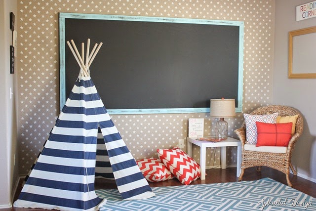 After I posted about the playroom progress I had a couple of people approach me on how we made the giant chalkboard. Well, it is very easy and inexpensive! The whole project costs us less than $100.
